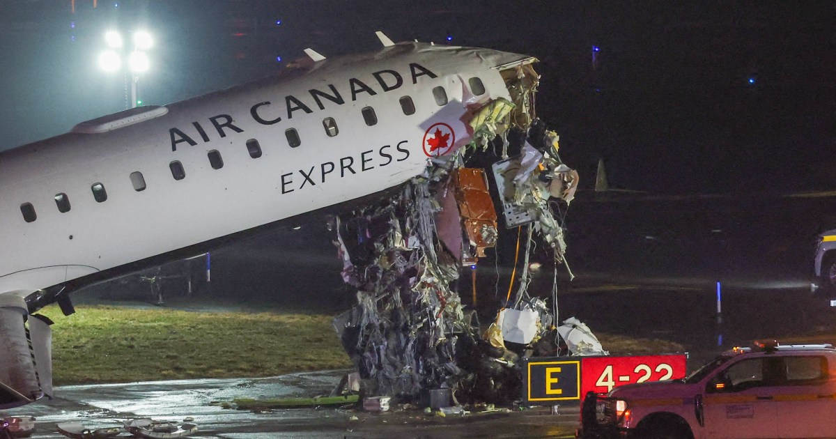 The incident occurred while the Air Canada Express flight 8646 from Montreal was landing at New York’s LaGuardia. Save Share An Air Canada Express flight 8646 from Montreal has struck a ground vehicle while landing at New York’s LaGuardia, leading to the airport’s closure. The New York police told the AFP news agency on Monday that the Air Canada plane “collided with a port authority vehicle”. Separately, the fire department said it had “responded to a reported incident involving a plane and vehicle” on runway four. Air Canada in a press release said the preliminary passenger list indicates the plane was “carrying 72 passengers and 4 crew members, although this is subject to confirmation”. The incident occurred at 11.47pm (0347 GMT) local time, it added. The CRJ-900 aircraft struck the vehicle on Sunday evening at a speed of about 24mph (39km/h), flight tracking website Flightradar24 said. It was operated by Jazz Aviation, Air Canada’s regional partner. The United States Federal Aviation Administration (FAA) issued a ground stop for all departures to LaGuardia due to the aircraft emergency, with the airport closure in effect until 05:30 GMT. The probability of an extension was listed as high. The FAA notice stated that the airport halt was due to an emergency and that there was a high probability of an extension, providing no further details. Unverified footage on social media showed damage to the plane’s nose as it tilted upwards. The Reuters news agency could not immediately verify the footage. LaGuardia’s website showed arriving planes had been diverted to other airports or returned to their point of origin. In a separate notice to airmen, the FAA said the airport could be shut until 18:00 GMT. New York’s emergency management authority warned people to “expect cancellations, road closures, traffic delays & emergency personnel” near the major transport hub in the borough of Queens. “Use alternate routes,” it said on X.
