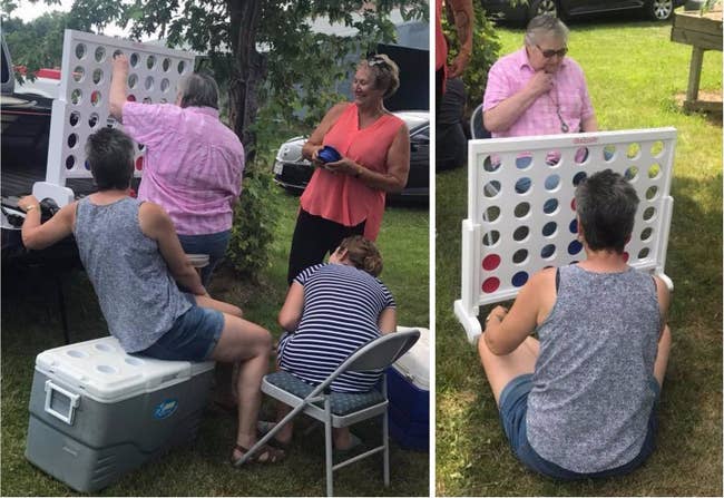 Promising review: "I love this oversized yard game of dice because you can adapt it to many other games that use dice. The BEST part of this product is its quality. The solid wood bucket and dice are painted a beautiful deep amber color and treated to withstand all kinds of weather, something you need for a yard game to last! The dice have rounded corners, which makes them easier to roll, and they come with up to 10 games laminated for protection. This is going to last through many seasons of fun! Don’t hesitate to purchase!" —Gifted Teacher 305