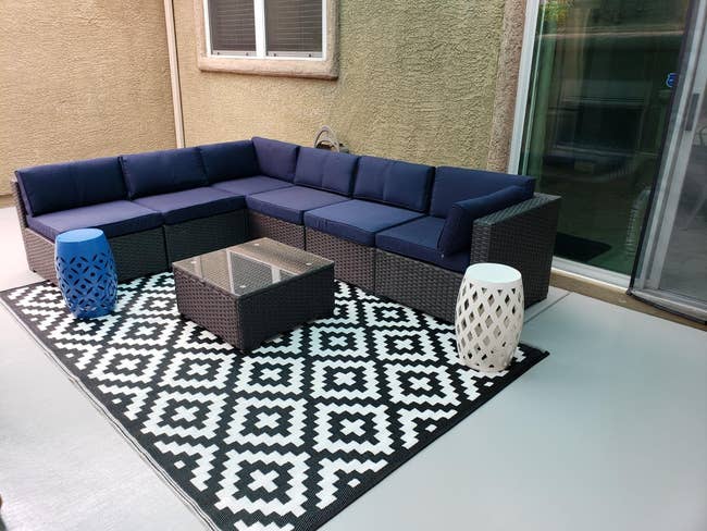 Promising review: "Love this rug! It looks great, feels great, is easy to clean, and is very durable! Have had this for about two months, and it still looks brand new. This porch gets sun for two-thirds of the day and does not show any sign of sun-bleaching! It's cute and no maintenance!" —Pomchi Productions