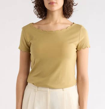 Promising review: "LOVE this top. I didn’t read that it was a crop top, so I was surprised, ha, but thankfully it’s not too cropped and works with high-waisted bottoms. The fabric, y’all, is the softest ever! Def will be ordering in other colors!" —sophieellie