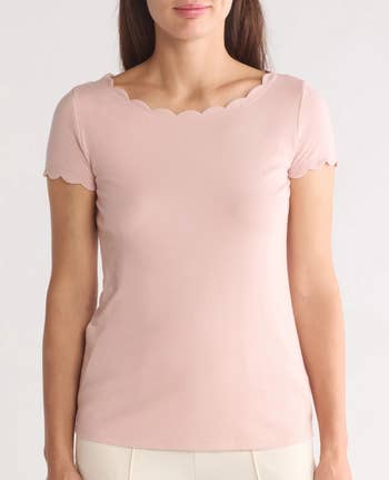 "Soft, comfortable fabric and cute cut. I usually wear a medium or large, and a medium fits best in this top. I bought one in each color because of the great price." —LMGlisa!