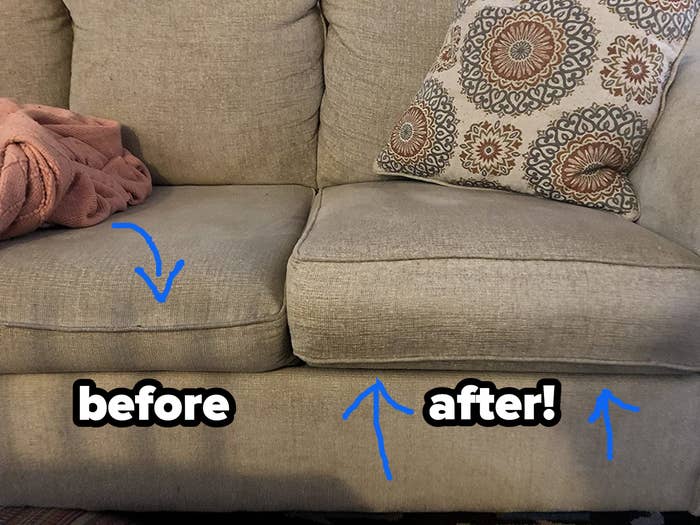 We hope you love our recommendations! While every product is independently chosen by our editors, BuzzFeed and our publishing partners may collect a share of sales or other compensation from the links on this page. You can read more about how our affiliate partnerships work in our Editorial Standards & Ethics Guide. Professional-level fixes and upgrades that make a noticeable difference. If you're anything like me, you're looking around your home, wondering when your couch got that saggy, your shower ended up so scummy, and your gorgeous leather ottoman accumulated so many stains. Wasn't all new like just a couple years ago?? Wait, you mean 2019 was SIX YEARS AGO? If this is you, too, the solutions to all kinds of conundrums like these will help restore a bunch of your favorite things around your home to their rightful glory. It's basically a piece of thick foam that you insert into the bottom of each cushion to plump up all the other layers, and a piece of thin foam that goes near the back of the cushion for extra support. So your couch will feel equally comfy but look brand new. Promising review: "This is actually a great product! I have a 2.5-year-old couch I bought from a reputable furniture store, and the cushions never were very great — I was to the point of taking them all to an upholsterer to have restuffed, and then saw this item in a BuzzFeed article and tried it. It’s made all the difference in the cushion I had the most trouble with. The best part is that it doesn’t make the cushion any more or less firm, but it does provide noticeable support for the cushion stuffing so that it compresses appropriately." —bmwAggie2017 Get them on Amazon for $34.99 per kit; each kit fixes one cushion. And it works on sweaters and clothes, too, of course! Promising review: "I bought this on a whim in last attempts to save my favorite duvet cover. The pills had gotten to the point where it was seriously uncomfortable to sleep with them getting all up in my leg space. I thought I was going to have to get a new duvet cover entirely. Along came this li'l baby. Not only is my duvet cover basically brand new, but I have found a new hobby. I’m depilling everything. Sweatshirts, leggings, blankets, socks, anything that looks like it needs some love. It does the job quickly and leaves everything looking fresh." —Dena Jensen Get it on Amazon for $14.99+ (available in two colors). BuzzFeed Shopping editor Maitland Quitmeyer swears by hers! She writes: "Like many of you, I've been living in sweats and PJs during this year+ of WFH full time. And it's made me revisit the state of some of my loungewear. Take for example, this college sweatshirt I wear all the time — as evidenced by the rather EXTENSIVE pilling all over it. So when I saw this pumice-esque sweater stone (it's made from upcycled car windshield glass — how cool is that?!), I decided it was worth the try. We've featured electric pill removers (mostly the fan-favorite Conair one) many times, and they really work. But sometimes you're looking for a little more detail or control — that's where this stone comes in handy. I was able to navigate around the contours of the logo on my sweatshirt with ease, removing pills using the corner or the entire flat bottom in a few quick strokes. It truly took no time at all — the sweatshirt was done in mere minutes. The only thing I would note is that particles do 'fall out' of the stone, so do your pill removing on a surface that's easy to sweep or vacuum up at the end." Promising review: "Love, love, love these soft velvet pillows! The velvet is very smooth and even and doesn’t look sparse or cheap at all. They feel expensive and look like high-quality pillows. I also love the soft colors with contrasting trim, it’s very whimsical and cute. And the cats’ hair doesn’t clinging to the pillows so that’s an added bonus. Overall very happy with my purchase!" —NG2 Get the pack of four from Amazon for $29.50+ (available in eight sizes and ten color combos). Promising review: "I’ve never heard of this stuff. Most of the time, when I hear people rave about a product, it never works as well when I get it home. This stuff was different. Made a small paste, covered the bottom of a stainless steel pan. Using an abrasive pad, cleaned the bottom in a few minutes." —Dr.MikeRobe Promising review: "Like a hot knife through butter for built-up hard water stains on my glass shower doors. I've tried everything and this stuff worked in two minutes. Made me a little embarrassed it took so long to find something so effective. I haven't tried it on anything else yet but I guarantee I'll be reordering just to have extra. Just can't have enough of a good thing." —Ron Just make sure to use them only on surfaces you're pretty sure they won't scratch! You can alway test in a discreet area first to be sure. Promising review: "Seriously, I have never wanted to clean our toilets as much as I do now. These little brushes have gotten off years of stains and water scum from our glass shower doors in just a few minutes. I would have never been able to get them even a fraction as clean by hand. We had stains in the toilets from our well water that I thought were permanent. Turns out that they were easily erased with this handy little brush. Our grout is sparkling again and my husband thinks I have lost my mind with the drill. I have actually been walking around the house looking for things to clean with this. They even cleaned our birdcages immediately with just water and no chemicals at all. What a great Amazon find!!" —Happy Yogi Get them on Amazon for $19.99+ (six bristle stiffness options available). You do have to let it sit for four to five hours (or even overnight), but the results, as proven by the review photos like the one here, are worth it. Promising review: "I’m very happy! I applied it this morning and by noon you could see the difference. The caulking around the tub is so white just like I ju
