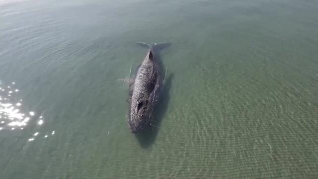 Humpback whale stranded in shallow waters in northern Germany