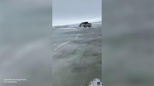 Viral video shows trucks driving through foot of water on thawing Minnesota lake