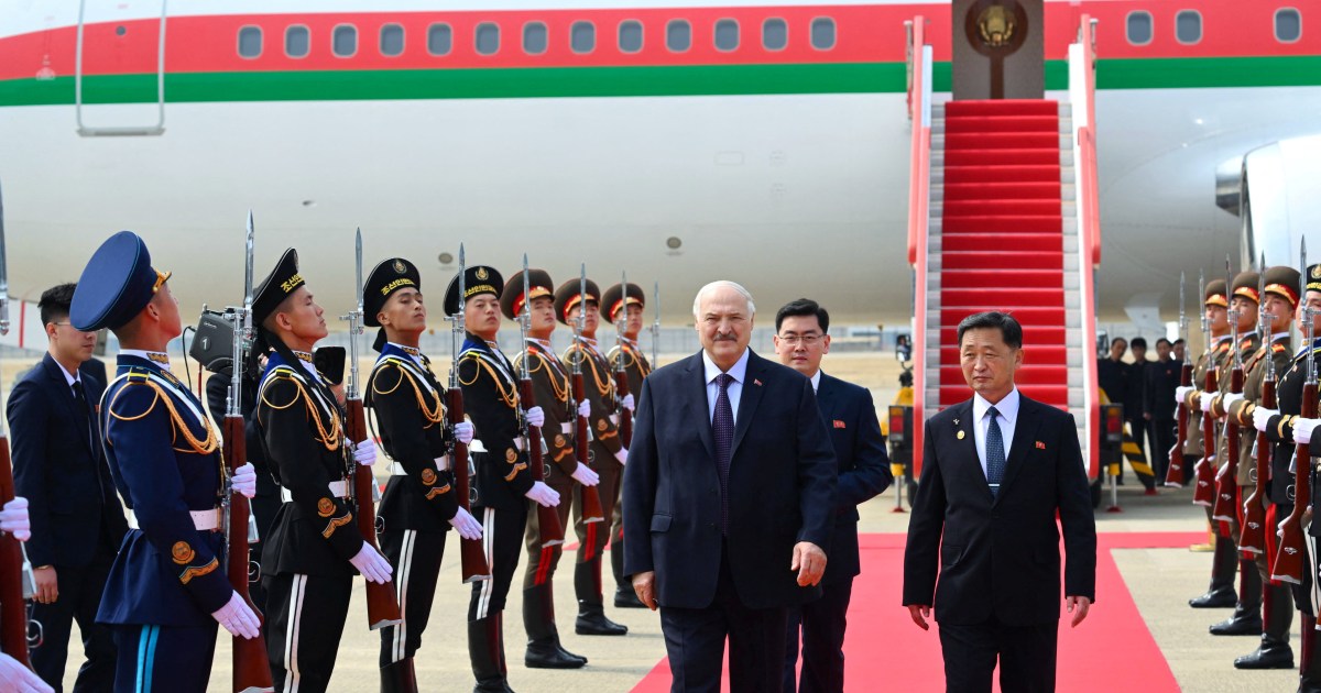 Belarus and North Korea are expected to sign a treaty of friendship as their leaders meet in Pyongyang. Save Share Belarusian President Alexander Lukashenko has begun his first official visit to North Korea, in a bid to strengthen ties between the two countries united by their support for Russia’s war in Ukraine and accusations of authoritarianism and rights violations. Belarusian state news agency Belta said the two-day visit that kicked off on Wednesday aimed to “identify key areas of mutual interest and the most promising projects for implementation”. Lukashenko was quoted by Belta as saying “the time has come to step up relations”. “The current situation is simply pushing us into each other’s arms,” he added. The Belarusian president said they planned to sign a “treaty of friendship” and “about 10 agreements” during the visit. Kim Jong Un and Lukashenko met in September in Beijing when they attended a military parade at Tiananmen Square, where the North Korean leader reportedly extended an invitation. In a letter to Lukashenko earlier this month, Kim said he was “willing to expand and develop the traditional relations of friendship and cooperation … to a new, higher stage in line with the demands of the new era”, the North’s official Korean Central News Agency (KCNA) reported. The Belarusian leader, in return, said that, “Minsk affirms it has an interest in actively expanding political and economic ties with Pyongyang at all levels.” North Korea has been under Western sanctions, mostly due to its nuclear weapons programme and missile activity, but also because of its support for Russia’s war against Ukraine. South Korean and Western intelligence agencies estimated that the North has sent thousands of soldiers to Russia, primarily to the Kursk region, along with artillery shells, missiles and rocket systems. Analysts say North Korea is receiving financial aid, military technology, food and energy supplies from Russia in return. This has enabled Pyongyang to lessen dependence on its main long-term backer, China. Russian President Vladimir Putin visited North Korea in 2024 for the first time in 24 years and promised to support Pyongyang in defending its interests against what he called “US pressure, blackmail and military threats”. During Putin’s trip, North Korea and Russia signed a mutual defence agreement under which the two countries were obliged to provide military assistance if the other was attacked. International rights organisations accuse the North Korean regime of torture, public executions, prison camps, forced labour and restrictions to the freedom of expression and movement. Belarus has also moved deeper into Russia’s orbit, after serving as a launchpad for Russia’s invasion of Ukraine in 2022. Lukashenko has come down hard on any dissent inside the country during his three decades in power. US President Donald Trump has sought to build ties with Belarus in his second term, easing sanctions and welcoming it to his “Board of Peace”. He also met Kim in his first term and there has been speculation of a rerun when the US president makes his delayed visit to China next month. Minsk has released dozens of prisoners in recent months, including 250 earlier this month, largely due to US efforts. But it still holds hundreds of political prisoners in its jails, many of whom were arrested after the 2020 election that saw a landslide victory for Lukashenko, seen as a sham by the opposition.