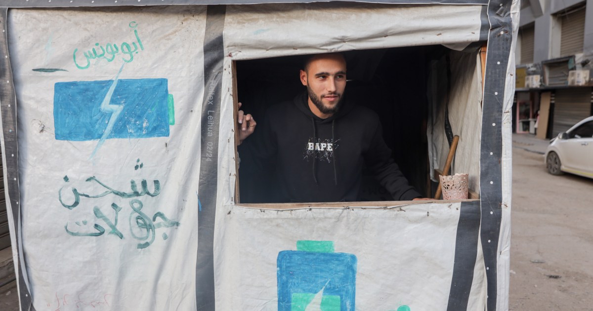 Gaza’s professionals adapt careers to survive, shifting from arts and business to whatever they can find to make money. Save Share Gaza City – On a street corner in Gaza City’s Remal market, Abdulrahman al-Awadi stands inside a small tarpaulin-made tent that he set up as a mobile phone charging station, a job that emerged during the war and has since become his livelihood. Al-Awadi has hung his artwork above shelves that hold mobile phones and charging units. He checks the sunlight and the efficiency of the solar panel mounted above. The 25-year-old, who graduated from Al-Aqsa University’s fine arts faculty two years before Israel’s genocidal war on Gaza began, never imagined he would end up standing on his street, watching phones being handed to him one after another to charge for one or two shekels. “Before the war, I worked in fine arts and graphic design, and I was still taking my first steps in the world of exhibitions and advertising,” al-Awadi told Al Jazeera. “Today, as you can see, I work behind a small ‘charging point’ near my home, trying to secure the bare-minimum income to get by.” “I spent four university years in studios, working on art projects, exhibitions, and crafts. All of that has become memories, with no way back.” During the war, al-Awadi was displaced with his family to southern Gaza for a year and a half. There, he tried to hold onto some of his experience in fine arts and design, but he was too distracted. “I tried to go on YouTube and watch art exhibitions and artists’ work. I tried to refresh my knowledge, to draw and sketch,” he explained. “But everything around me was bombardment, destruction, and fear.” Once al-Awadi was able to return to his home in Gaza City, he found that his drawings and tools had vanished. His room soon became a shelter for displaced relatives. “[My drawings] were burned and destroyed in the shelling near our home. My tools, my colours, my studio… everything is gone,” he said. He found himself forced to adapt, creating a new source of income from nothing. “People come to charge their phones. One shekel [$0.30] per charge. Even a shekel is hard to find, because there’s almost no liquidity in the country.” A-Awadi’s shift, from an artist to a participant in Gaza’s “survival economy”, illustrates a wider situation in which traditional professions have disappeared and new jobs, shaped by war and shortages, have emerged. The economic situation in Gaza has sharply worsened since the war began, as widespread destruction, displacement, and the collapse of basic services have forced even skilled graduates to adapt to makeshift jobs. With limited opportunities in their trained fields, many have turned to small-scale, often improvised work, such as charging phones, selling food and water, or providing essential services, to secure a daily income and support their families. Rami al-Zaygh, an economic researcher who has conducted a study into the survival economy, told Al Jazeera that such make-shift professions have pulled many Palestinians “from the brink of certain death by providing a minimum level of income and meeting basic needs”. “What has happened is that the war has pushed society back decades, bringing back professions that only a handful of people still practised, while also giving rise to jobs that had never previously existed in Gaza,” he said. According to al-Zaygh, a common feature among these jobs is their simplicity, as they do not require specialised skills or advanced equipment. “Most of this work is carried out using very basic tools, and relies on making use of any available resource for survival,” he added, noting that many such jobs show a degree of innovation, including finding ways of charging devices and batteries, or registering people on lists for aid. These jobs are neither stable nor permanent, he said. “They are intermittent and constantly changing, shaped by the conditions of war itself, from bombardment and repeated displacement to instability, and are among the most difficult consequences of this war.” These shifts reflect the collapse of Gaza’s economic structure. According to figures cited by al-Zaygh, the territory’s gross domestic product (GDP) has contracted by about 85 percent, while unemployment has surged to approximately 80 percent, with nearly the entire population now living below the poverty line. Under these conditions, participation in the makeshift and unstable job market is no longer limited to a specific group, but has spread across all segments of society. “Everyone has become involved in this economy – men and women, children and adults, students and graduates, even those with higher degrees – driven by necessity and desperation,” al-Zaygh said. These jobs “emerged as an exceptional and temporary response in Palestinian life, but have developed over the course of the prolonged war, and may continue until the conditions that created them come to an end and stability returns”, he added. Mustafa Bulbul, 32, has also found himself working at a stall in Remal. He sells sweetcorn, working alongside his brother. Mustafa, who holds a degree in business administration and used to work for a local company owned by relatives before the war, has lost everything he built in his professional life. Now displaced from al-Shujayea in eastern Gaza City, he lives with his wife and three children in a tent near the market. “I lost everything in the war… my home, my job, my profession. As you can see, I even lost my personal and academic identity,” Mustafa told Al Jazeera as he poured corn into cups for customers. “Life here is merciless. As long as I have the responsibility of taking care of my children and family, I had to work in whatever job was available.” Mustafa explained that work in business administration has become nearly nonexistent in Gaza. “The company I worked for was destroyed, and its warehouses were 