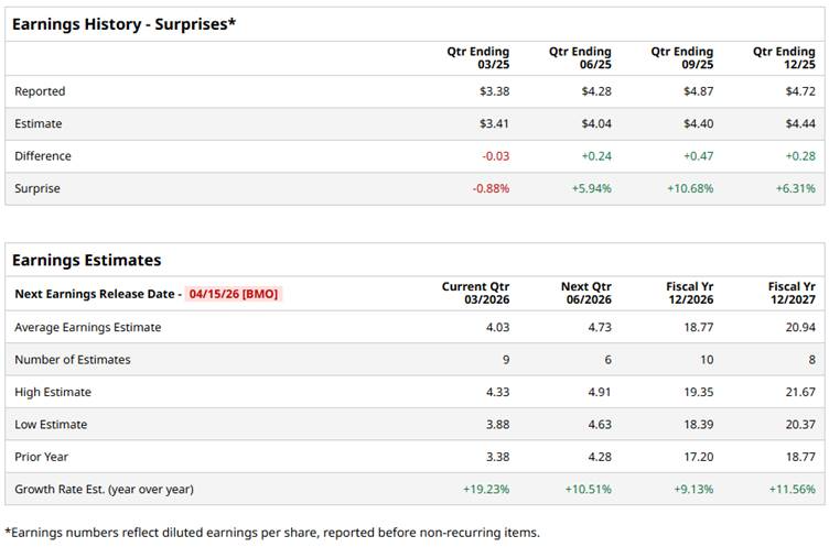M&T Bank Corporation (MTB) is a bank holding company headquartered in Buffalo, New York, providing a broad range of retail and commercial banking, lending, and wealth management services through its primary subsidiaries, Manufacturers and Traders Trust Company and Wilmington Trust., M&T Bank has a market cap of $30.5 billion, reflecting its position as a leading regional bank in the U.S. financial sector. The company is expected to announce its fiscal Q1 earnings for 2026 before the market opens on Wednesday, April 15. Elon Musk Just Announced a ‘Herculean Task’ for Tesla. Can TSLA Stock Survive and Thrive? Bank of America Says Oracle Stock Can Gain More Than 30% from Here. Why? Micron Broke Below Its 50-Day Moving Average. Should You Buy the Dip? Tired of missing midday reversals? The FREE Barchart Brief newsletter keeps you in the know. Sign up now! Ahead of this event, analysts expect the bank holding company to report a profit of $4.03 per share, up 19.2% from $3.38 per share in the year-ago quarter. The company has surpassed Wall Street’s earnings estimates in three of the last four quarters, while missing on another occasion. For the full fiscal 2026, MTB is expected to deliver an EPS of $18.77, up 9.1% from $17.20 reported in fiscal 2025. Meanwhile, in fiscal 2027, its earnings are expected to further grow by 11.6% year-over-year to $20.94 per share. Shares of M&T Bank have rallied 11.9% over the past 52 weeks, underperforming the S&P 500 Index’s ($SPX) 14.1% rise, but outpacing the State Street Financial Select Sector SPDR ETF’s (XLF) 2.2% slump over the same time frame. Shares of M&T Bank Corporation have risen over the past year largely on the back of a strong rebound in profitability, highlighted by full-year results in 2025. The bank reported net income of $2.9 billion and net operating earnings per share of $17.20, representing a 16% year-over-year increase, compared to 2024, when results had declined. This sharp earnings recovery, driven by higher net interest income, improved margins, and disciplined cost control, signaled renewed operating momentum and reinforced investor confidence. Wall Street analysts are moderately optimistic about MTB’s stock, with a “Moderate Buy” rating overall. Among 23 analysts covering the stock, seven recommend “Strong Buy,” one suggests a “Moderate Buy,” 14 advise “Hold,” and one gives a “Strong Sell” rating. The mean price target for MTB is $234.55, which indicates a 14.6% potential upside from the current levels. On the date of publication, Subhasree Kar did not have (either directly or indirectly) positions in any of the securities mentioned in this article. All information and data in this article is solely for informational purposes. This article was originally published on Barchart.com