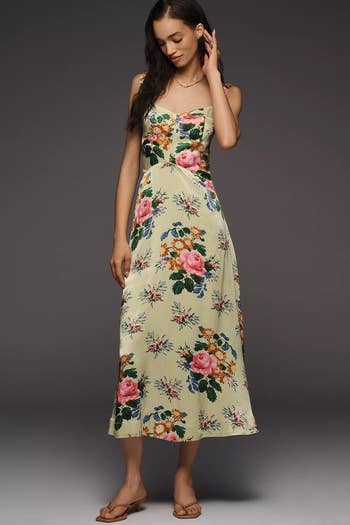 Promising review: "This is truly my favorite wedding guest dress I've worn to date. I will say this is very long. I'm 5'6'' and still had to wear my highest heels. But seriously, a showstopper." —APAnthroInsider