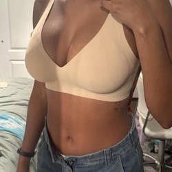 Promising review: "WORKS AMAZINGLY!! I have the hardest time finding bras that truly fit, and let me tell you, it fits so amazingly. I’m a bigger girl, so it’s difficult, but it didn’t give me excessive back rolls or anything!! Def recommend buying !!" —layla