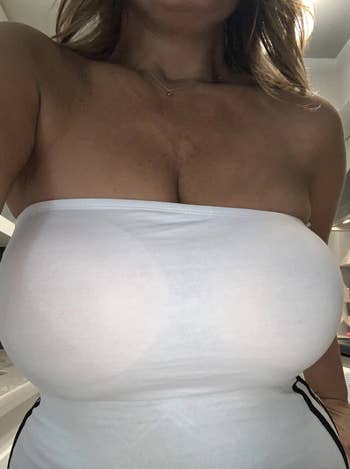 Promising review: "Seriously, having large (DDD) boobs can really put a damper on trying to wear cute shirts in the summer. Some shirts you can’t wear a bra with, and going braless is 100% not an option, so I heavily rely on sticky bras. I definitely prefer the silicone ones over the cloth ones, and this bra just reinforces that opinion. It sticks so well and is completely invisible, even under the clingiest shirts I own. Another huge bonus is the nipple covers! I have used many different types over the years and have found that the silicone ones can sometimes look puffy under certain shirts, but these covers are thin and (again) cannot be seen under clingy clothes at all. They come in handy if you know you will be outside and run the risk of sweating off your bra since the nipple covers do not have that issue." —Sarah F.