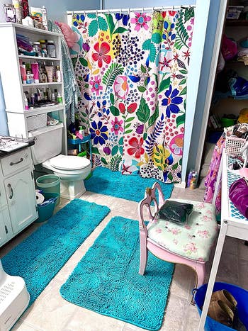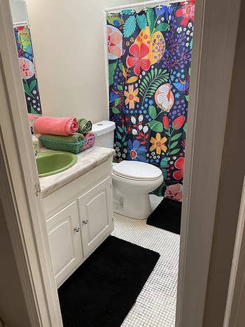 Promising review: "I’m so in love with this bath mat! It absorbs water, so it dries fast, and it's soft to stand on. I love this cute design! Cheery for my bathroom! Makes me smile!" —Drhonda fitzroy