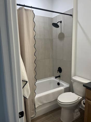 Promising review: "This shower curtain is such a good find! The linen texture looks high-end and adds a soft, neutral vibe that works with any bathroom style. It’s lightweight but hangs beautifully, and the length is perfect for extra height. I’m honestly shocked at how much it upgraded the whole space for such an affordable price. If you want a simple, chic, easy bathroom refresh — this is it!" —MrsBlandford