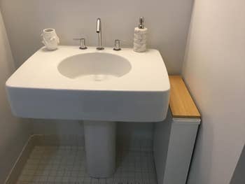 Promising review: "Recently removed the radiators out of my old house, and the bathroom had a narrow space that just looked empty. This fit perfectly, providing much-needed storage, and keeps the room from looking cluttered. Easy to assemble and sturdy enough that I am not afraid of it falling apart. Love this!" —Amber Kuhn