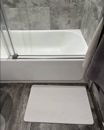 Promising review: "I actually saw this type of bath mat on TikTok and decided to look them up. I ordered the gray one and was extremely impressed with it. I’ve already recommended it to coworkers. It’s very absorbent and quickly dries up the water after a shower." —DirectorPrime