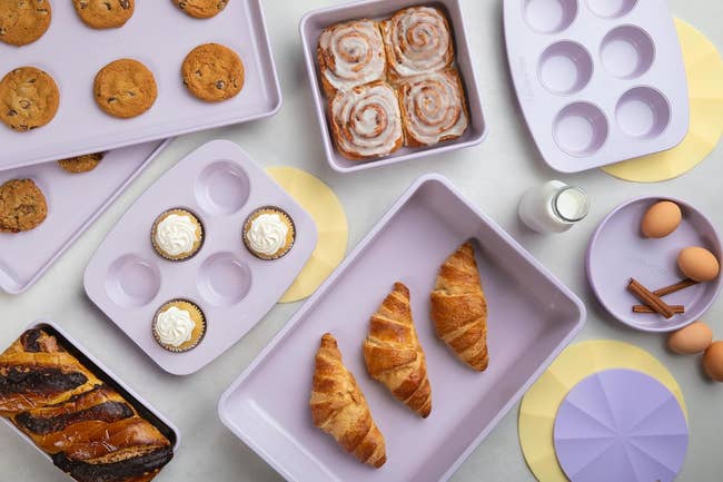 Promising review: "This set has everything! I’m so happy that I finally have a matching set! I love the color too! The large baking dish is perfect for large portions. I doubled a recipe of my shepherd's pie and still had plenty of room. The pans have been great — nothing has stuck to them yet and they clean up so easily. I’m loving this brand. Everything has been great quality and a really reasonable price." —JackieG