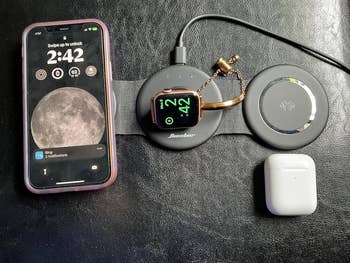 Promising review: "These chargers are great. Space for phone, watch, and AirPods, or two phones. They work much better than some of the more expensive brands. You can tell when you put your phone down that it connects like a magnet to make sure your phone is properly placed for charging. It also folds up small for travel. Only wireless charger you will need." —Amazon Customer