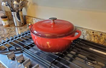 Promising review: "I've used this one and a Le Creuset brand and see no difference in performance, maintenance, and cleaning. I've used it for beef stews and bread. Cleaned easily and seems very durable." —Stephen