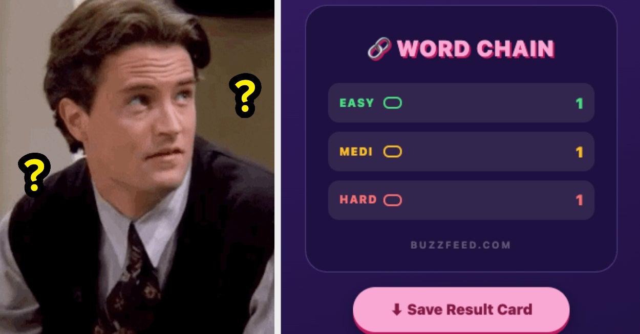 Word Chain #15! Good luck with this one... ⛓️ Want to get your very own quizzes and posts featured on BuzzFeed’s homepage and app?