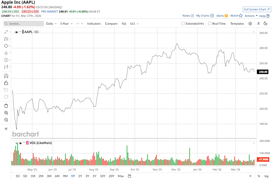 Wall Street firm Wedbush has sounded another voice of optimism for Apple (AAPL). This time, the reason is the company's upcoming developers conference (WWDC) in June. In a note to clients, the firm hinted that with an array of new products already under development or set for launch soon, Apple is positioned well to see a meaningful surge in revenues. The firm said, “We note that the company is likely in the later stages of developing its foldable phone, iPhone Fold, based on supply chain checks, which is rumored to launch later this year alongside the iPhone 18 launch in September, adding an additional catalyst to its hardware revenue. We also note that the company continues to fuel its innovation engine with more Mac products expected to hit Apple’s stores with many rumors circulating around a touchscreen MacBook to allow developers to improve app testing and functionalities.” Everyone Is Talking About Volatility. That’s Not The Story. Should You Buy the Dip in Western Digital Stock as Google Launches TurboQuant? Iran, Oil Prices and Other Key Things to Watch this Week Stop Missing Market Moves: Get the FREE Barchart Brief – your midday dose of stock movers, trending sectors, and actionable trade ideas, delivered right to your inbox. Sign Up Now! Valued at a market cap of $3.6 trillion, AAPL stock is up 13% in the past year, with the launch of the iPhone 17 providing a much-needed boost to its fortunes. Now, if Wedbush is to be believed, the stock is poised for further upside. Does that warrant an investment in the iPhone maker's stock? Let's find out. Apple continues to demonstrate remarkable staying power in the consumer technology space, even with its premium pricing strategy. Over the past decade, the company has achieved CAGRs of 6.37% in revenue and 8.16% in earnings, a clear reflection of its powerful brand and the consistent quality of its products and services. Notably, the most recent quarter provided further evidence of this strength. Revenue reached $143.8 billion, up 16% year-over-year (YoY) and ahead of consensus expectations. Much of the momentum came from the iPhone 17 lineup, which drove iPhone sales to $85.3 billion, a 23% increase from the prior year. The high-margin services business also performed well, growing to $30 billion from $26.3 billion in the year-ago period. Gross margins also improved to 48.2%, highlighting Apple’s continued pricing discipline. Earnings per share rose 18% to $2.84, beating the Street forecast of $2.65. The company also returned capital to shareholders through $25.2 billion in share repurchases, providing an additional boost to EPS. Meanwhile, cash flow from operations was particularly robust at $53.9 billion, an 80% increase from the previous year. Apple ended the quarter with $45.3 billion in cash and equivalents, comfortably exceeding its short-term debt of $13.8 billion. From a valuation standpoint, AAPL trades at a premium to the broader sector, with forward P/E, P/S, and P/CF multiples of 29.25x, 7.85x, and 24.98x, respectively. However, when viewed against Apple’s own five-year averages, the current levels appear reasonable for a company of its caliber. Many had written Apple off due to its perceived slowness in adopting AI. Moreover, the somewhat botched launch of Apple Intelligence did not do its AI reputation any good. However, the company seems to be finally getting its act together, with a strategy based on its core strengths of design and privacy. While other tech giants have rushed to launch standalone chatbots or highlight raw computational power, Apple is treating AI as an extension of user interface and product design. Apple Intelligence is being woven seamlessly into the daily user experience, such as smart notification summaries, writing assistance natively embedded in the keyboard, and intuitive photo editing. By prioritizing ease of use over technical flexibility, Apple is domesticating AI for the mainstream consumer, focusing on slowly but surely embedding AI across its 2.5 billion device base. Then, a key component of Apple's design ethos is user privacy, which serves as a major attraction for many consumers. Notably, Apple's architecture specifically relies on on-device processing for most AI tasks and Private Cloud Compute for heavier workloads, creating a formidable competitive moat for the company. This privacy-centric design appeals to consumers and enterprise users who are hesitant to adopt AI due to data security concerns, ultimately reinforcing brand loyalty and ecosystem lock-in. Meanwhile, the WWDC in June is expected to build upon these strengths by launching the revamped Siri. After significant delays, this new iteration of Siri is expected to finally deliver advanced conversational capabilities and deep ecosystem integration, potentially powered in part by a partnership with Google (GOOG) (GOOGL) Gemini. Notably, Apple is expected to showcase how Siri can now retain personal context, demonstrate onscreen awareness, and execute complex cross-application actions natively. The event will also likely highlight the robust AI capabilities of the recently released M5 family of processors, which serve as the hardware foundation for these software advancements. Built on a third-generation 3nm process, the M5 chip features a 16-core Neural Engine and introduces dedicated Neural Accelerators within every core of its 10-core GPU. This architecture delivers over four times the peak GPU compute performance for AI workloads compared to the previous M4 generation. Furthermore, the base M5 chip boasts a unified memory bandwidth of 153 gigabytes per second, while the M5 Max scales up to an impressive 614 gigabytes per second with up to 128 gigabytes of total unified memory capacity. These massive hardware specifications are critical because they allow Apple to run LLMs and advanced diffusion models entirely on the device, ensuring user privacy by eliminating the need for constant cloud processing. Alongside