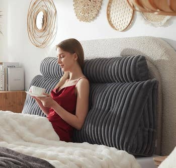 We hope you love our recommendations! While every product is independently chosen by our editors, BuzzFeed and our publishing partners may collect a share of sales or other compensation from the links on this page. You can read more about how our affiliate partnerships work in our Editorial Standards & Ethics Guide. If your headboard (or lack thereof) is causing your strained neck to talk smack about you to your pained back, you need a headboard pillow. Promising review: "Love the color, softness and how thick the pillow is. It fits perfectly in our travel trailer queen bed and on the jack knife couch to watch TV. It was the perfect buy! It even has a removable and washable cover!!" —Amazon Customer Get it from Amazon for $79.98+ (available in five sizes and 14 colors). Promising review: "I absolutely love this Headboard Pillow. I like sitting up and relaxing. I don't like having to hit my head on the wooden headboard and constantly repositioning pillows. This fixes all my problems. To be honest. It's a cozy pillow as well. 5 Stars for this." —Reader Get it from Amazon for $62.99+ (available in four sizes and six colors). Promising review: "I never knew that headboard rests such as these were a thing!!! They fit well and certainly make the lean-back against the headboard so much more comfortable!!! So soft, so smooth, so perfectly fitted to my headboard! They feel absolutely heavenly!!!" —Gypsy Gaeda Get it from Amazon for $47.99 (available in ivory and grey). Promising review: "Just look at how cool this is. And it really is so comfortable to lay your neck in the neck spot. Headboard size and strong, not under-stuffed, but still soft to rest my head on or sit up." —sandy Get it from Amazon for $69.98+ (available in three sizes and five colors). BorysCa is a Ukrainian design brand that was started by a husband-and-wife duo. They specialize in unique and cozy home decor. Get it from BorysCa on Etsy for $75.60+ (originally $84; available in 12 sizes and lots of colors). Promising review: "Bought this for my guest room because I bought a metal platform bed, and pillows would slide back against the wall. My sister said it was perfect. So it’s a 5-star day." —Phyllis Get it from Amazon for $96.95+ (available in three colors). Laura Park Designs is a woman-owned, family-run small business creating unique and colorful textiles that'll help transform your home. Get it from Laura Park Designs for $179 (available in 13 styles). Get it from Amazon for $49.99+ (available in two sizes). Promising reviews: "I just underwent a major surgery, and I have a lot of pain in my stomach and my back, so getting up from my deep-set bed was painful and difficult. I struggled to get comfortable, trying to adjust the pillows to support me just right. When I tell you this product is a LIFE-SAVER. Worth every penny. I can finally get in and out of bed with ease. And when I'm in bed, I'm finally comfortable. The adjustable neck pillow is perfect to center the pillow right under your neck. Absolutely incredible." —Skylar Evgi "I originally bought this wedge pillow for spinal support — you know, the adult way of saying 'my back hurts when I breathe.' But little did I know, this orthopedic masterpiece would soon become the unsung hero of our bedroom Olympics. First night using it, my husband looked at me like I was the newest model in a Tesla showroom. Next thing I know, I’m folded like a lawn chair on the Fourth of July. And guess what? ZERO back pain. Ten out of ten. Would get folded again. So, if you want improved posture AND the ability to try positions that previously required a personal injury attorney — get the wedge. Your chiropractor might be disappointed, but your marriage won’t be." —Doug Schramm Get it from Amazon for $37.98+ (available in three sizes and 11 colors). Promising review: "I had spinal surgery and am not able to lie flat on my back. If a recliner is not available, then this works best so I can sleep. It helps to take the pressure off my spine." —Sunshine P Get it from Amazon for $29.99+ (available in six colors). My Little Space is a woman-owned small Etsy shop making cute and unique goods for kids and their rooms. Promising review: "It's so lovely. Soft and plush but firm enough to hold its own. Absolutely love this piece!" —Alaina Get it from My Little Space on Etsy for $52.09+ (available in six sizes). Get it from Pottery Barn Teen for $149 (available in pink and blue). Promising reviews: "Love this thing! Hate when my pillows fall in the crack between mattress and headboard. This solves it!" —Maya Lynne "I've had trouble with my pillows always slipping down between my bed and the wall. Not anymore. This is a great product to have. I don't have a backboard, but it really doesn't matter as it stays firmly in place." —Jeff Brown Jr. Get it from Amazon for $22.99+ (available in sizes Twin–California King) Promising review: "Gorgeous headboard! Easy to put together and looks just like the photos, so happy!" —Karl LaishaLeatherStudio is a small business specializing in custom leather upholstery, cushions, and outdoor decor. Promising review: "Excellent headboard cushions. Custom to exactly what I needed. Very happy with purchase. Quickly made and shipped." —Brooke Get it from LaishaLeatherStudio on Etsy for $93.55+ (originally $187.11+; available in four sizes). BlueBrushGifts is a small business based in Poland that makes gift and decor items. Promising review: "Absolutely stunning! We’ve had our pillow for our 180cm wide bed for about 2 months now, and it’s the best thing we've ever bought. We love reading in bed and watching films, and it has just transformed the comfort of our bed for us. Quality and colour are gorgeous! Would 100% buy again! And reallyyyyy worth the price." —Marlene Get it from BlueBrushGifts on Etsy for $333.16+ (originally $416.44+; available in 16 sizes and a variety of colors). Promising review: "Perfect as an alternate headboar