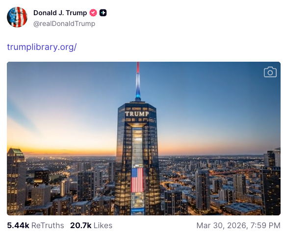 Trump Shared A Mock-Up Of His Presidential Library, And It Contains One Verrrrry Weird Detail