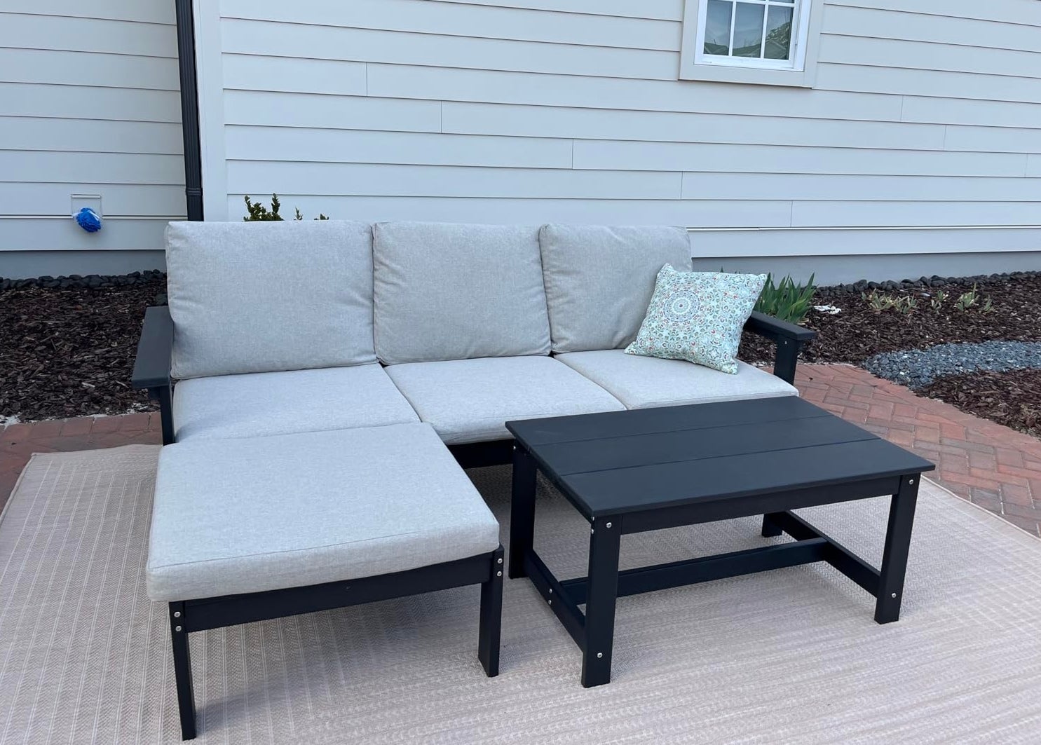Promising review: "Fantastic set!!! Great price, great product! Easy to put together. Very sturdy and strong. Rain beads up on the frame very nicely. Cushions are nice and thick. Seats are wide and very comfortable. Love the black frame. I feel I got every penny's worth!" —Sharon