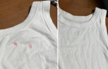 My 2-year-old is a big ice pop fan, so I've got a long life ahead of me to be filled with stain removal. I held her while she sucked down a red ice pop on a 90-degree day. Naturally, it dripped all over my white tank top (note to self: stop wearing white around these kids). I was actually kind of excited because it meant I got to put my newly purchased bottle of Miss Mouth's Messy Eater Stain Treater Spray to the test! I followed the directions on the bottle that said to dampen the stained area, spray it with the stain remover, then pop it into the washing machine as usual. What do ya know — it really worked! Completely cleared away all the red stains! Not sure what witchcraft has been used to make this product, but I'm here for it.
