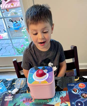 This toy has bought me so much time. My kids adore theirs — even though they're only 4 and 2 — they have no problem understanding how to turn the Toniebox on, change the volume, and place different characters on top to tell various stories. He's a big fan, as am I! It can also be used while it's charging, so there's no need to worry about your toddler having a meltdown if they want to play with it while the battery is drained (phew).