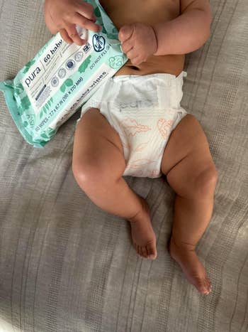 Promising review: "As a new parent, finding products that are not only effective but also gentle on my baby's delicate skin has been a top priority. Pura has exceeded all my expectations. The diapers are incredibly absorbent, keeping my little one dry and comfortable for extended periods. I love that they're free of harmful chemicals and fragrances, giving me peace of mind that my baby's skin is well cared for. I appreciate Pura's commitment to sustainability. The eco-friendly materials used in their products align with my values as a parent striving to reduce our environmental footprint." —Brandon & Erica