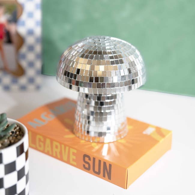Promising review: "Very cute — larger than expected, and extra mirror pieces included if needed. I highly recommend this mirror disco mushroom!" —su