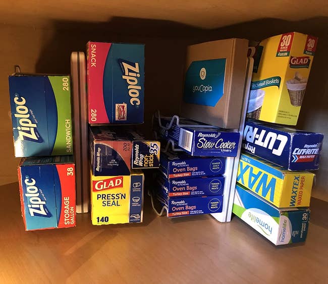 We hope you love our recommendations! While every product is independently chosen by our editors, BuzzFeed and our publishing partners may collect a share of sales or other compensation from the links on this page. You can read more about how our affiliate partnerships work in our Editorial Standards & Ethics Guide. Number 14 would've come in clutch during my "hoodie" phase in high school. Promising review: "My parents have this system. I cook a lot and my spices were all over the place and hard to locate. This probably explains why when I finally got organized I had doubles (ashamed to say triples as well) of some items. On a recent visit to my parents, I checked out their spice rack. As soon as I got home, I ordered two, and they worked wonderfully! Love the stickers!" —Jeffrey H. Get it from Amazon for $29.99+ (available in two sizes). This holder has five spring-loaded slots that can be adjusted to fit any handle size and six retractable hooks. Promising review: "These broom holders are amazing. We bought two (put one in our laundry room utility closet and one in our garage) and love them so much we bought a third! Super easy to install and super easy to use. Love that there are also hooks that fold out! Keeps our long-handled items so much neater and easier to reach." —JennN. Get it from Amazon for $17.97 (available in four colors and multipacks). Promising review: "These are the greatest for organizing stacks of clothes in deep drawers. Installation is quick and easy, and they can be moved if you decide to reconfigure. I love this product! I highly recommended." —Lou Powers Get a pack of four from Amazon for $19.99. Promising review: "Where has this been my entire life? I love that the shelves are adjustable, so I can fit a variety of wraps and other household cleaning boxes in them. Easily take out the needed box, and it goes back. My cabinet is finally neat!" —Jill R Promising review: "I thought this would be handy and help with space management in a small apartment. It turned out to be absolutely perfect. It keeps the silverware clean and stores a lot in a very small space. I love it. I got two because I inherited my grandmother's silverware, so there are two types of forks and two types of spoons, and I wanted things to be separate and organized. Two organizers fit side by side in a standard apartment drawer. After getting these, I picked up the knife organizer, and it’s just as handy and useful." —Magpie Get it from Amazon for $11.98+ (available in two options). Promising review: "Great for organizing the pantry, craft rooms, and bathrooms. Finally have a way to keep all the junk off my counters. Pockets are huge, hooks leave a low profile (so no issue with scratching), and seems very sturdy for holding all my junk so far (it's mostly holding way too many hair products in my bathroom at the moment). Love that this is clear so you can see everything." —Breanna Get a pack of two from Amazon for $16.87. Promising review: "I was tired of bags floating around under the sink. This is a cute way to keep things contained. Easy install, durable, easy to grab bags from. Recommend to anyone trying to declutter and save space!" —Allison Ryan Get it from Amazon for $23.99 (available in two colors). Promising review: "Reusable water bottles are great, but they are such a pain to store since they come in all shapes and sizes. They’re tall, they can’t nest inside each other, and if you lay 'em on their sides, they just roll everywhere. This storage rack efficiently eliminates that problem! The three-tier version was an awesome fit for my pantry. Will be getting a second one soon; I have collected so many free water bottles over the years! Might even consider using it elsewhere, like for my vinyl rolls. Easy to set up — I did it without the instructions in just minutes. Highly recommend, worth the value." —Momo Kariño Get it from Amazon for $19.99+ (available in two colors and three styles). Promising review: "Yes...I have too many clothes. I LOVE my leggings. These saved me soooo much room! Now I have much more space, AND I can see them all more easily." —Larry Seymour Get a pack of two from Amazon for $12.99+ (available in seven colors and three pack sizes). Promising review: "These hangers are great for organizing sports bras! Easy to use, and they hold a good amount of weight. They work even if you put the bras on both sides so it holds 16 instead of just eight. Recommend spreading a few inches apart so as not to put too much weight on the clothing rack." —JSmith Get a two-pack from Amazon for $13.99+ (available in four colors and five set sizes). Promising review: "Loves these for labeling my garage, basement, and closet bins! They stick to everything! I’m buying more!" —Emily Get a pack of 30 from Amazon for $7.65+ (available in various sizes). Promising review: "I have lots of plastic storage boxes in the basement, well-organized, but I tended to forget what's where, so I decided to see if there's such a thing as removable labels. Sure enough, found them. The labels are larger than I expected, but it's nice to be able to write on them in large letters. They're pretty easy to peel off — not as easy as a Post-It note, but the label does come back off in one piece. I smile every time I see my labeled boxes and know where everything is." —SG Get a pack of 150 from Amazon for $7.49 (available in three quantities). Check out how they work on TikTok here! And PS: Wonder Hanger is a small biz! Promising review: "I wish I had taken the time to take a before and after pic, because I have so much more room in there now than I did before. I found the cutest tops in there that I had completely forgotten about because my clothes were crammed so tightly in the closet. Most of the time, I felt like I had nothing to wear, LOL, and now, I know exactly what I have, and it's even organized by sleeve length and color. I would definitely buy again and actually plan to buy