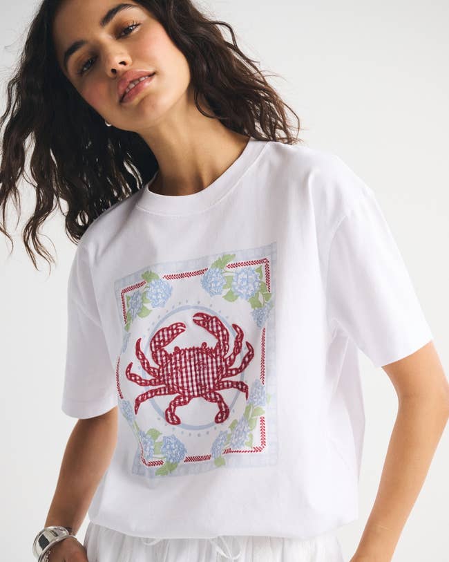 "I love this shirt! As a Marylander, I find that this crab really spoke to me, and it’s just as cute in person! It is very oversize as noted in the product description, and I like it that way, but for a more normal boxy fit, size down." —anonymous