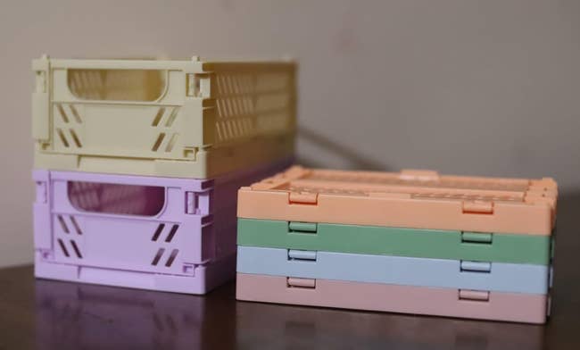 Promising review: "These are so great not only because of the cute colors, but how versatile they are! you can stack them and when not in use they are easily put away and dont take up too much space. I use them for everything, I have some in the bathroom, bedroom, and even pantry!" —Ana S