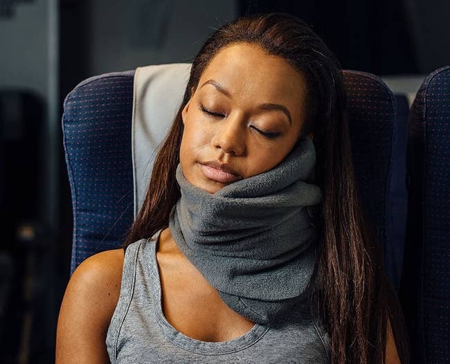 Promising review: "I am a terrible flyer who recently took the red-eye from Dubai to Chicago (15 hours). The Trtl pillow was a mini lifesaver! I was able to comfortably rest my head on the support and felt warm enough to actually doze off... A rare accomplishment for this skittish flyer. The hook and loop closures work wonderfully with regard to adjustment, and I liked wrapping the fabric around my mouth and nose. Sort of felt cozy... Even if I did look like a ninja in a neck brace! Overall, this product has changed the way that I fly, and I am so thankful for this invention and the opportunity to support a small company with big ideas." —S.Viruly