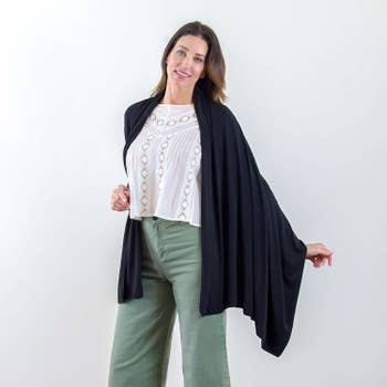 Promising review: "I absolutely love this wrap!! It is the perfect weight and size for travel. It didn't leave my side on an 11-day backpack trip through Europe and was used as a scarf, blanket, towel, and wrap all through the trip. Fashionable enough to dress up a basic travel day outfit, warm enough to keep away a chill on a cooler night, and light enough to pack away small into a bag or tie around a purse strap. I can't say enough great things! I am buying these as gifts for everyone I know who travels." —Jenn