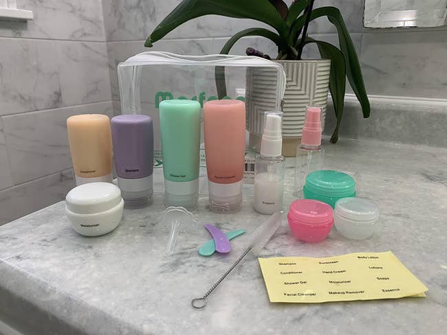 Promising review: "I used this for a two-week international trip. I did two mini-trips to other locations. The squeeze bottles did not leak, held enough product for the trip, and are cute. The spray bottles worked well for hair products. I wish there were a couple more bottles instead of the jar containers, but that’s the set. The zippered bag worked fine, though I probably only opened/closed it about 10 times." —Jan