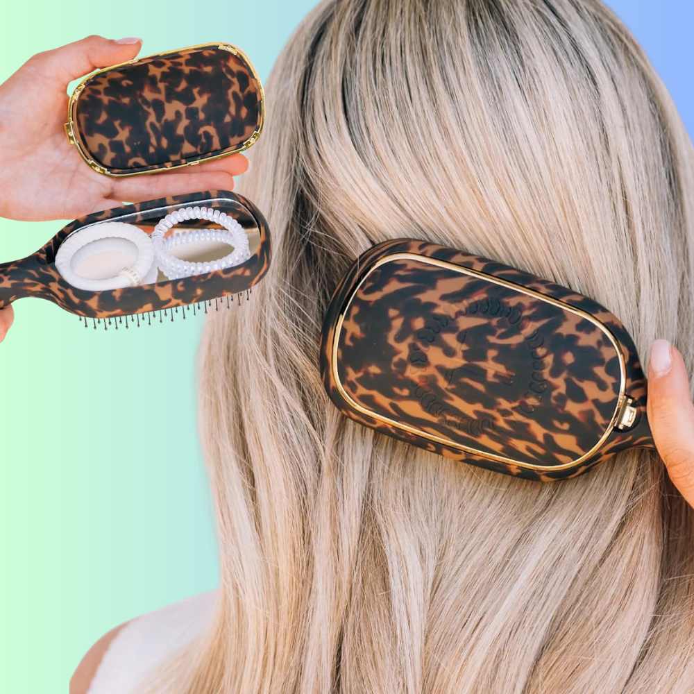 Teleties' attractive brush has a built-in mirror and storage for transporting your hair ties. That makes it great for travel or throwing in your bag. It comes in three different versions, each tailored for your hair type: fine, medium and thick (currently out of stock). There's even a pick built into the handle that makes it easier for you to remove hair from the bristles — making it easier to keep you brush clean, per Bowles' guidance.