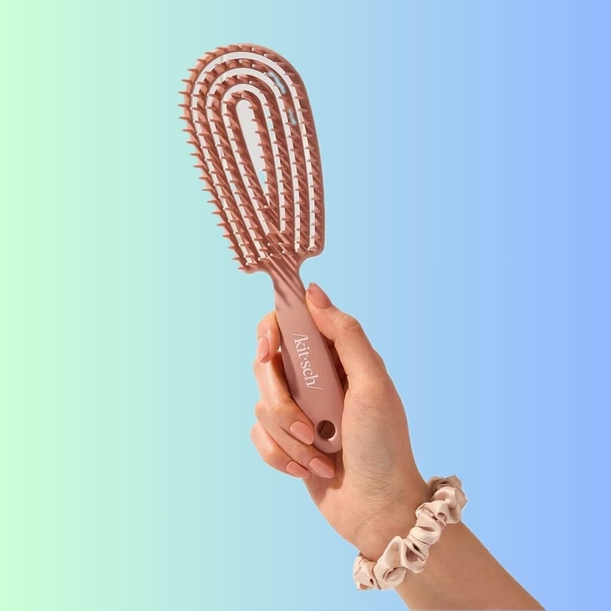 This unique-looking hairbrush has flexible bristles that help to detangle your hair and massage your scalp. The Kitsch detangling flexi brush comes in four colors.