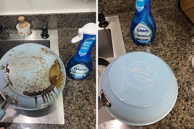 Promising review: "My wrist says thank you! This works amazingly well! I do professional housecleaning for a living and this is a game changer! Just look at what the power scrubber with a little baking soda, dish soap and vinegar can do in the picture above! Powerful combo!" —Nicole Foster