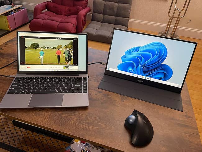 Promising review: "This external monitor is a great tool for my travel needs. It fits well in my laptop case, so I can use the same case to carry both my laptop and the monitor around, and have two monitors whenever I need. Having an additional monitor makes my work more efficient. Since it uses USB-C port to charge, I don't have to carry another power adapter, I can use a single cable to bring both power and signal from my laptop to the monitor. (But my previous charge-only USB-C cable won't work, it needs to use the thicker charger + data transfer cable.) I was also able to use it as the monitor for my Samsung phone through DeX, which makes the screen of my phone much larger effectively. This monitor is slim, light, and very easy to set up, just plug and play. The picture quality is very good. Overall I'm very happy with this purchase." —OMNJ