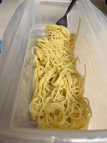 Promising review: "I don't want to get all gushy over a pasta maker, but man...I really love this gizmo! I like spaghetti — either with normal Prego-type sauce or sometimes just with butter and Romano cheese sprinkled on. But I'm lazy and impatient, and don't like things that take a long time to make, with a bunch of steps, and a big clean-up afterwards. The Fasta Pasta is perfect for me. I get the exact amount of correctly-measured spaghetti; it's faster than boiling water in a big pot, then having to watch and stir the pasta; the pasta comes out perfectly cooked every time; and the cleanup is a snap." —Smilin Sam