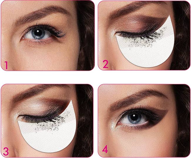Promising review: "I've been a certified makeup artist for 12 years. Used for my cousin's wedding makeup, and they worked really well as far as catching fallout and shaping goes, but taking them off, they really stick, so just be gentle. Still great." —Andrea