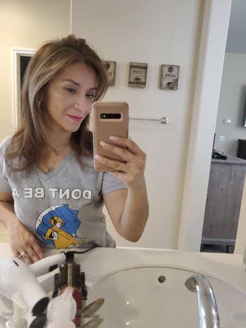 Promising review: "I am a licensed cosmetologist of 30+ years and I couldn’t be more pleased! Salon-perfect, shiny, bouncy blow outs! Dries and styles in one or two easy passes ( on damp hair) and provides maximum lift if I style it that way. Easily dries and styles large sections of hair making this THE BEST hairstyling tool! Highly recommend! I use the low setting and cool blast. Surprised and very happy that I don't need med/high settings. Only caveat I have come across so far: the temp/speed setting is in an awkward place to be able to change it while using. Learning curve, I suppose. Otherwise, another GREAT styling tool from Revlon! ❤️❤️❤️❤️❤️" —ERJ