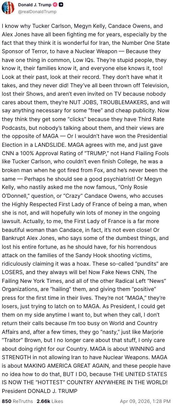 In this week’s Cringe Report, we’ve got a nepo baby cage match, an awkward moment on board Artemis II, and Trump’s most horrifying post yet.