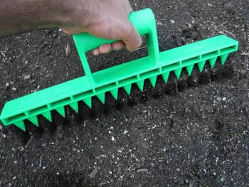 Promising review: "Okay, I'm a gadget fan, and this is a GREAT gadget. At 17 inches long, it works for any kind of in ground, container, or raised bed. Good weight, sturdy. Gives nice, straight, easy-to-space rows. The points are 1 inch apart. Nice spacing for easy thinning, or just seed every second or third or fourth divot depending on what you are planting. For those who think it might be too deep, easy enough to adjust that for your needs. Have personally found that even lettuces come up stronger for slightly deeper than recommended planting depth, then again, live in the hot dry desert. All in all, a great idea and good quality tool." —Candace Delaney