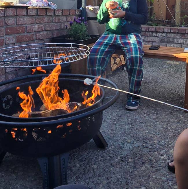 Promising review: "Happy campers! I can not say how much I love this! What I thought would be something taking up space not used other than the 1 party I bought for has made it easy to make my favorite mountain pies all summer long! Definitely recommend great quality for the price. I love that the rim around it protects from burning and stays cool." —Kristi L.