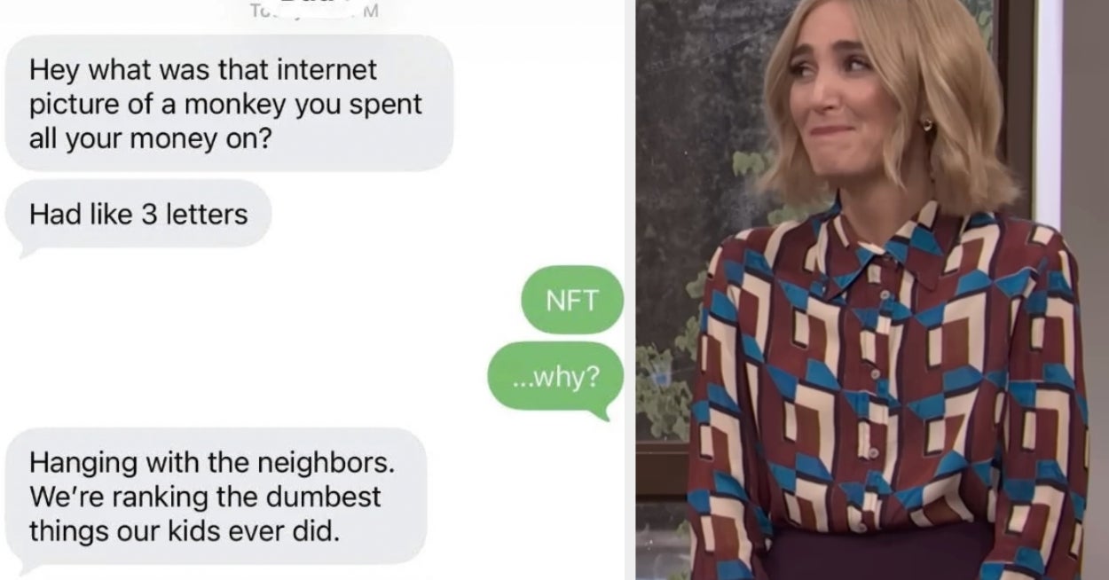 "Hey, what was that internet picture of a monkey you spent all your money on? Had like three letters."
