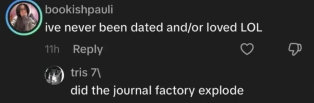 "I've never been dated and/or loved LOL."