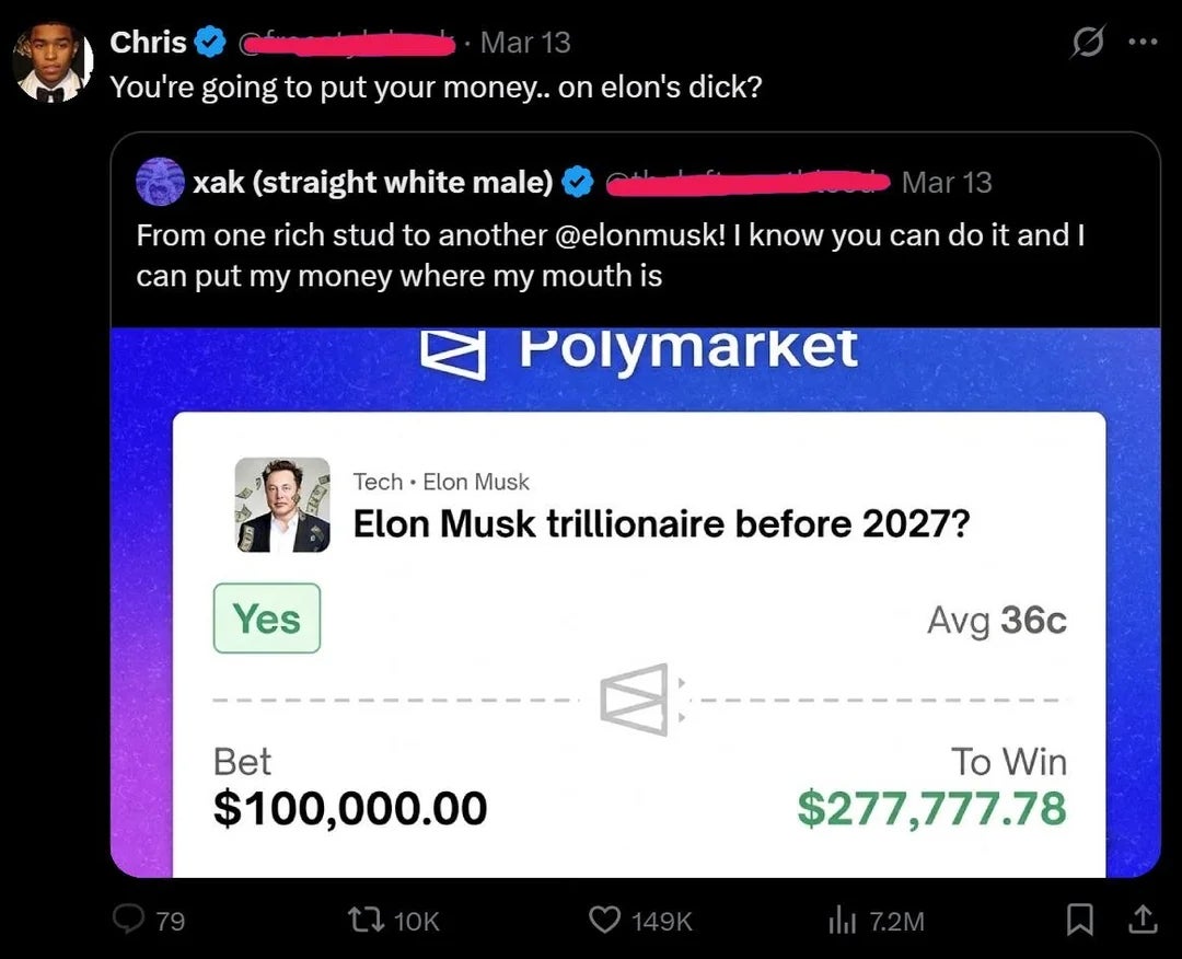 "You're going to put your money... on Elon's dick?"