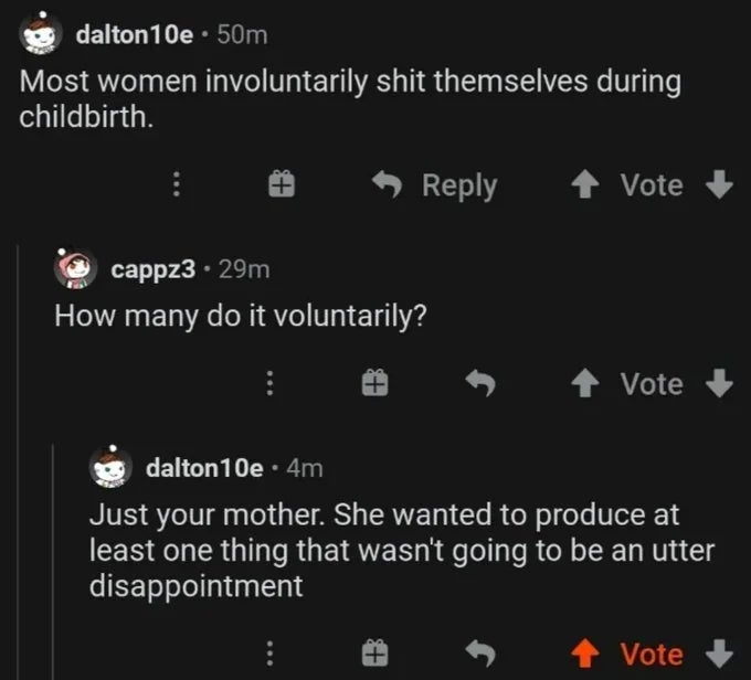 "Most women involuntarily shit themselves during childbirth."